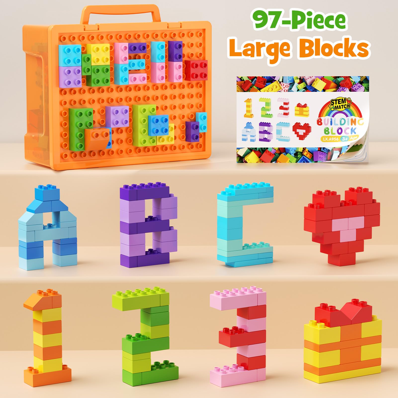 Vanocat 97PCS Building Blocks Set with Storage Box & Base Plate - STEM Educational Toys for Toddlers, Kids Ages 3+, Compatible with Major Large Particle Building Block