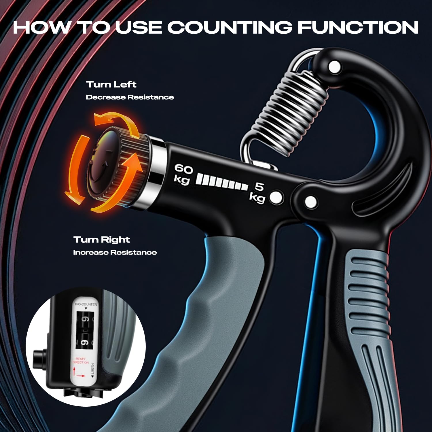 [Smart Counter for Progress Tracking] Our Vanocat grip strength trainer feature a lifetime counting function that never needs charging. Simply press the button to count each workout and rotate the knob to reset.