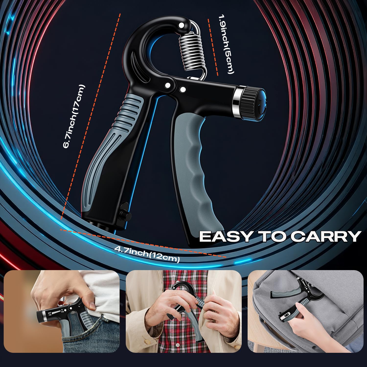 [Compact & Durable] Made of reinforced materials, our portable grip strength trainer is durable and easy to carry, allowing you to train anywhere and anytime.